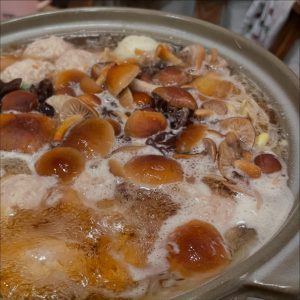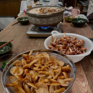 今晩の夕食はキノコ鍋 塩屋のお山の原木栽培、ナメコ、椎茸、クリタケ、キクラゲ。 本日、収量の多かったナメコ、クリタケは食べ放題となっておりますw
